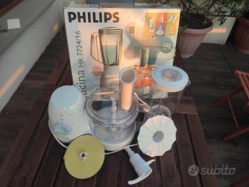Vendo robot da cucina Philips praticamente nuovo , dotato di tutti gli accessori ancora nel loro incarto originale. Il robot è dotato di doppio motore per tritare , montare , sminuzzare da una parte e dall' altra caraffa per fare frullati e succhi di frutta e verdura.