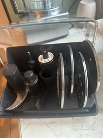 Robot da cucina professionale Magimix 5200XL multifunzione trita, impasta, grattuggia, con tre bacinelle di misure grande media e piccola a seconda delle quantità che si sndranno a lavorare. È completo di scatola accessori che comprende quattro dischi affetta verdura, di spremiagrumi e libro con istruzioni e ricette. Acquistati nel luglio del 2023 ed usato pochissimo. Vendo per altto acquisto equivalente