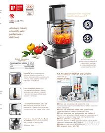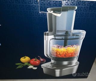 Robot da cucina semi-professionale della Masterpiece Collection è realizzato con l'esclusiva tecnologia PowerTilt. La combinazione ottimale delle lame grandi rivestite in titanio, il recipiente appositamente inclinato di 5° rispetto alla base ed il potente motore ad induzione da 1200 W, permettono di miscelare uniformemente ed in meno tempo tutti gli ingredienti. Inoltre in dotazione ci sono: 2 recipienti da 4.2 e 2.2 lt, lame piccole rivestite in acciaio inox, disco affettatrice regolabile, disco per emulsionare, disco per grattugiare, borsa per contenere il kit degli accessori, scatola originale (vedi foto). Vendo per inutilizzo.