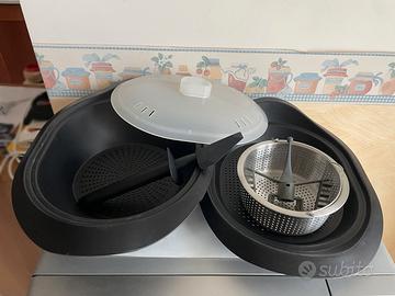 Royalty Line TC-2000, perfettamente funzionante, usato con cura e completo di accessori: Caraffa con lame Farfalla per miscelare Vaporiera tipo Varoma + coperchio Cestello in acciaio Spatola Bilancia laterale integrata Funzioni principali: trita, frulla, miscela, cuoce e scalda. Perfetto per vellutate, sughi, creme, risotti e preparazioni quotidiane. Adatto anche per impasti leggeri. Vendo per inutilizzo. Prezzo: 100€ trattabili Solo Consegna a mano. Per info o altre foto, contattatemi in privato, no affaristi no perditempo.