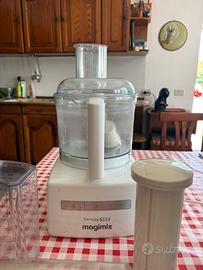 -Robot da cucina multifunzione con vari accessori per affettare, grattugiare, tritare e impastare.