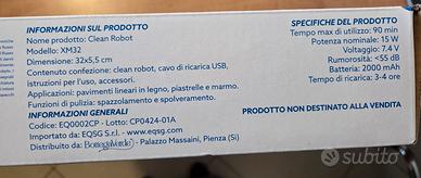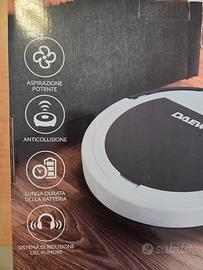 Robottino aspirapolvere Daewoo XM32 usato pochissimo, completo di cavo alimentazione, spazzolina per pulirlo e panno. Usato un paio di volte