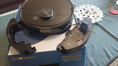 Robot Ecovacs T9 AIVI. Il DEEBOT T9 AIVI pulisce qualsiasi superficie senza il minimo sforzo grazie all'avanzata funzione OZMO™ Pro. Pulisce, aspira e lava simultaneamente il pavimento con una vibrazione di 480 volte al minuto per rimuovere efficacemente le macchie ostinate da qualsiasi superficie. Gestibile con ap, mappatura delle stanze, usato pochissimo.