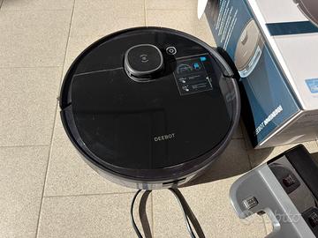 Aspirazione e lavaggio pavimenti 1. la tecnologia Smart Navi 3.0 Laser permette al DEEBOT di navigare in modo per la casa e mappare gli ambienti e le stanze. Consente di mappare piu piani. 2.Utilizzando l'App puoi creare barriere virtuali per impedire al robot di pulire alcune aree. 3.La potenza di aspirazione raddoppia automaticamente quando il robot rileva un tappeto. 4. Con la capacità del serbatoio dell'acqua di 240ml può occuparsi della pulizia di tutta la casa. 5.La spazzola rotante di spazzare in insenature profonde fino a 4 mm. 6.DEEBOT 920 supera soglie di 2 cm Ottime condizioni, buona durata della batteria