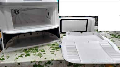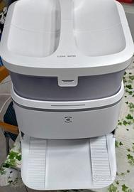 Robot aspirapolvere lavapavimenti con stazione automatica autopulente, appena resettato e pulito come nuovo, in garanzia fino a dicembre 2026. Il robot aspira e lava a terra tramite panni in microfibra girevoli e, una volta a terminato, in autonomia se ne torna nella sua stazione dove svuota il serbatoio della polvere e lava e asciuga i panni in microfibra: prende dal serbatoio Acqua Pulita, bagna-lava i panni in microfibra (con acqua riscaldata) e versa l'acqua sporca nel secondo serbatoio, quindi in automatico fa partire l'asciugatura ad aria calda, tenendo il sistema sempre pulito e pronto all'uso. La navigazione per la pulizia é tramite mappatura intelligente. L'app vi avviserá ogni volta ci sia la necessitá di cambiare il sacchetto della polvere o pulire o sostituire uno dei componenti del robot. Voi dovere solo tenere sotto controllo i due serbatoi d'acqua. Il robot e la stazione sono stati smontati e ripuliti pezzo per pezzo (come si puó vedere dalle foto), e il tutto é stato resettato per renderlo pronto all'uso. Le condizioni sono ancora ottime, e sono presenti ancora gli imballi originali. Ho sempre utilizzato acqua addolcita e filtrata per riempire il serbatoio, quindi non ha calcare o sporcizia. Oltre a questo ho una scatola di ricambi compatibili (sacchetti, spazzole, ...) e mezza bottiglia di detergente liquido apposito Ecovacs (che vi durerá ancora parecchio visto che la dose é di due tappi per un serbatoio pieno di acqua pulita). Posso spedire (via Tuttosubito) o ci si puó accordare per il ritiro a mano