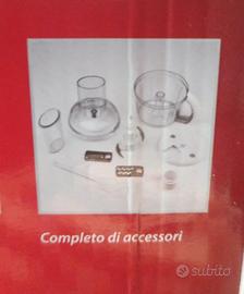 - completo di accessori: lama in acciaio inox, lama in plastica,supporto per lame, 2 dischi di taglio, planetario,accessorio per montare, contenitore,coperchio con premicibo