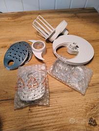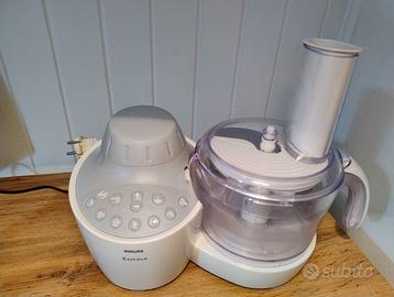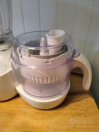 Robot da cucina funzionante, corretto di tanti accessori per frullare, tagliare, sminuzzare, emulsionare, centrifugare ecc ecc (+ libretto di istruzioni). Qualche componente presenta una crepa, che comunque non ne compromette il funzionamento.