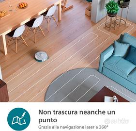 Navigazione Laser: Consente di ottenere una mappatura precisa con una scansione a 360 gradi; Copre senza sforzo i pavimenti per una pulizia impeccabile, anche in condizioni di scarsa illuminazione