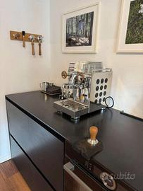 Vendo una Rocket Espresso Appartamento TCA in acciaio inox/nero per chiusura ufficio. Incluso un elegante set Wiedemann in rovere, un macinacaffè Eureka Mignon in acciaio inox, un cassetto battifondi Eureka in acciaio inox, oltre a vari accessori, ad esempio un tamper aggiuntivo. Dati della macchina: Rocket Espresso Appartamento TCA Inox/Nero Dimensioni: L 27 cm / P 43 cm / H 37 cm Sistema a circolazione termica per una stabilità della temperatura ottimizzata Tecnologia a doppio circuito per preparare contemporaneamente espresso e latte schiumato Gruppo E61 con pre-infusione delicata Caldaia in acciaio inox da 1,8 litri Pompa a vibrazione da 9 bar Lancia vapore Cool-Touch con ugello a due fori Serbatoio dell’acqua da 2,5 litri Spedizione possibile. Per qualsiasi domanda, non esitate a contattarmi.