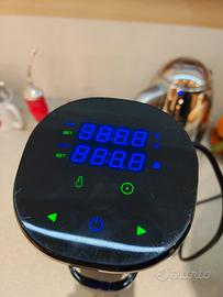 Vendo roner professionale vpcok con potenza 1000W, per cotture sous vide a bassa temperatura per ogni tipo di carne o pesce. Display a cristalli liquidi LCD intuitivo. Controllo touch screen intelligente, temperatura regolabile 25-90℃, precisione della temperatura ± 0,5℃, impostazione del tempo di cottura. Vendo per inutilizzo. Come nuovo. Compresa nel prezzo anche la sua vaschetta da 11 litri