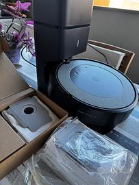 Roomba aspirapolvere modello iRobot i3+ con svuotamento automatico, all’interno presenti anche i ricambi, 4 sacchetti di raccolta e 3 spazzole pulizia.