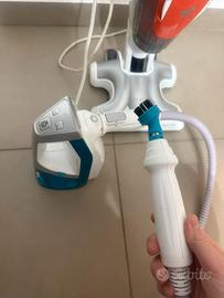 Scopa lava e aspira a vapore con tutti gli accessori per pulire piastrelle , cucina , bagno. Completo di filtro anticalcare e 5 panni per pavimenti e tappeto