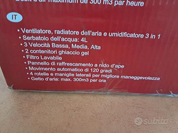 Vendo ventilatore 3 funzioni ,ventilatore 3 velocità, umidificatore ,aria refrigerata ,Nuovo con scatola