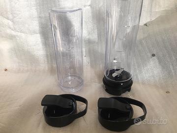 Due contenitori in plastica lavabili in lavastoviglie con coperchi e aperture per bere; grazie al tappo per bere, i frullati possono essere consumati anche in viaggio