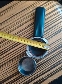 Braccetto porta filtro con filtro da due tazzine per espresso casa della Saeco. Dovrebbe essere compatibile anche con machine Gaggia e Philips, basta verificare il diametro da 7 cm circa. Usato pochissimo.