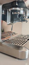supplementare con manico in fibra di carbonio, livellatore regolabile, puck screen diffusore, 2 tappetini e battifondi Sage. Macchina come nuova usata saltuariamente in ufficio, ha ancora gli adesivi sul contenitore caffè.