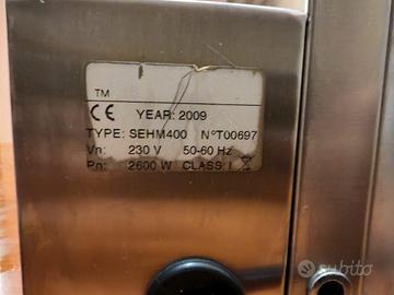 Vendo salamandra elettrica professionale in acciaio inox, potenza 2600W, alimentazione 230V. ✔️ Usata raramente ✔️ Perfettamente funzionante ✔️ Marchio CE presente ✔️ Struttura solida e professionale ✔️ Ideale per gratinature, tostature e finitura piatti Anno 2009 – Modello SEHM400 Classe I Ottima per ristoranti, gastronomie, agriturismi o anche per uso domestico evoluto. Possibilità di prova prima dell’acquisto. 💰 Prezzo: 700€ trattabili Contattami per ulteriori informazioni o foto. Per la spedizione da concordare