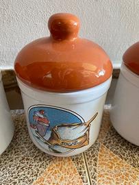 Tre barattoli terracotta sale zucchero caffè