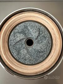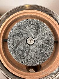 Vendo mulino a cereali Salzburger Getreidemühle MT 18 Buche (legno di faggio) come nuovo, utilizzato solo un paio di volte! Macina professionale austriaca di altissima qualità con pietre naturali in granito (diametro 12 cm), camera di macinazione in legno di faggio non trattato e corpo in faggio massiccio con finitura a olio di cera d’api biologico. Caratteristiche principali: • Motore potente e silenzioso da 900 Watt; • Capacità di macinazione: 270 g/min (farina fine) fino a 580 g/min (farina grossolana); • Regolazione continua della finezza (da molto grossolano a farina finissima); • Trita perfettamente grano, farro, segale, mais, riso, ceci, soia e tanti altri cereali secchi; • Design robusto ed elegante, peso circa 24 kg, altezza 47 cm; • Pietre in granito naturale: auto-affilanti, praticamente eterne (30-40 anni di vita) e con garanzia a vita sul materiale; Perfetta per chi vuole farina fresca integrale ogni giorno, più nutriente, aromatica e sana rispetto a quella industriale. Ideale per grandi famiglie, panificazione artigianale, pizza, pane, dolci e pasta fatta in casa. Prezzo nuovo ufficiale: 2.249 € (vedi sito produttore). Qui è come nuova con tutti gli accessori originali (inclusa una guarnizione sostitutiva). Oggetto pesante (24 kg), preferibile ritiro locale o spedizione concordata a carico dell’acquirente. A disposizione per ulteriori info. Trattative in privato.