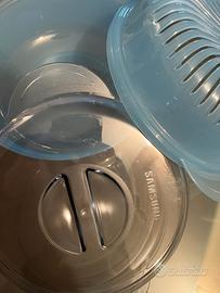 Forno Combinato Samsung Microonde Grill, microonde combinato con grill, vapore, crisp, libera installazione, ottime condizioni. Modello Samsung GE89APST, acciaio inox, forno a microonde combinato con grill da 23 litri, molto versatile. Capacità: 23 Litri . Potenza Microonde: 850 W (regolabile su diversi livelli). Potenza Grill: 1100 W / 1250 W. Rivestimento Interno: Ceramica smaltata (Ceramic Inside™). Dimensioni: Circa 48,9 x 27,5 x 39,2 cm. Display: LED con comandi a pulsante e manopola per il tempo. Dotato di tutti gli accessori in dotazione: vaporiera, piatto crisp (mai utilizzati). Con manuale di istruzioni in Italiano. Attenzione: non è un forno a microonde da 80 euro, si tratta di un forno combinato che nuovo costa sui 200-250 euro. Prezzo affare per immediato realizzo, causa trasloco.