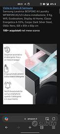 Samsung Lavatrice BESPOKE AI Laundry WF90F09C4S/U3 Libera installazione, 9 Kg, Wifi, Ecodosatore, Display AI Home, Classe Energetica A-55%, Corpo: Dark Silver Steel, Oblò: Nero, 60l x 85h x 60p cm