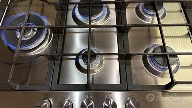 Usato, piano cottura Samsung da incasso 5 fuochi da 75cm modello NA75J3030AS. In acciaio inossidabile satinato con alcuni segni di usura del tempo e di utilizzo, griglie in ghisa con segni di usura del tempo, piano cottura perfettamente funzionante, completo di ugelli per gas e metano, di istruzioni e imballo non originale.