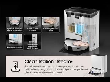 Samsung Robot Aspirapolvere Jet Bot Combo AI, Clean Station Steam+, AI Object Recognition, Carpet Care, Controllo Wi-Fi, Potenza 6000 Pa, Fino a 180 Min di Autonomia.