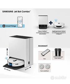 Vendo Samsung Robot Aspirapolvere VR7MD96514G/WA Jet Bot Combo, Clean Station Steam+, Sensore dToF LiDAR, Carpet Care, Controllo Wi-Fi, Potenza 6000 Pa, Fino a 180 Min di Autonomia, Satin Greige