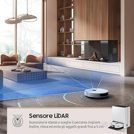 Samsung Robot Aspirapolvere VR7MD96514G/WA Jet Bot Combo, Clean Station Steam+, Sensore dToF LiDAR, Carpet Care, Controllo Wi-Fi, Potenza 6000 Pa, Fino a 180 Min di Autonomia, Satin Greige