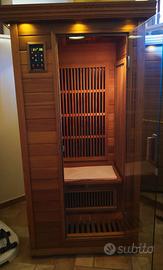 Sauna ad infrarossi 1 posto sky con design rinnovato tutta vetrata frontale, con questa sauna potrete rilassarvi dopo una giornata di lavoro stressante, riducendo la tensione muscolare, espellendo le tossine in eccesso, la sauna ad infrarossi offre diversi benefici, migliora la circolazione sanguigna, espelle le sostanze chimiche dannose e le cellule morte dalla superficie della pelle donando tonicità e riducendo le rughe dovute dall' invecchiamento, migliora il sistema immunitario, allevia i dolori e favorisce il processo di dimagrimento riducendo l'umidità in eccesso, sale e grasso sottocutaneo.