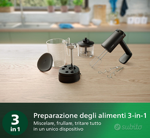 Preparazione dei cibi 3-in-1: Rilassatevi e godetevi la cottura con tre modalità di preparazione, mescolando, frullando e sminuzzando, in un unico e pratico dispositivoImpugnatura Sicura: Leggero, con impugnatura ergonomica progettata per non urtare il lato della ciotola e per un uso confortevole anche su impasti difficili