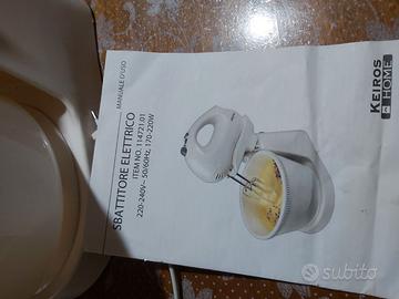Sbattitore con due tipi di fruste e ciotola girevole. Indispensabile in ogni cucina usato pochissimo perché doppio regalo