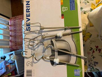 Sbattitore con ciotola Marca Severin Completa di due set di fruste. Modello HM 3816 Colore Grigio Dimensioni prodotto 32.99 x 23.01 x 23.5 cm; 2.56 Kg Capacit 3 Litri Wattaggio 300 watt Usato un paio di volte. Prezzo trattabile.