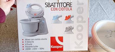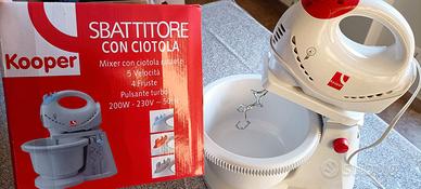 Sbattitore elettrico con ciotola e supporto. Le fruste incluse sono 2 e non 4 come indicato nella scatola.