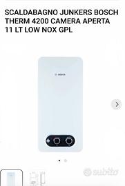 Scaldabagno Bosch Therm 4200 11LT GPL Usato in ottime condizioni, funziona perfettamente ed è incluso l’esalatore di fumi. Vendo per passaggio a caldaia Solo ritiro a mano e prezzo leggermente trattabile