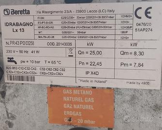 scaldabagno gas Metano camera stagna buono per dentro e fuori casa. Funziona con la corrente no batteria. Ultimo modello Beretta. Ottime condizioni.
