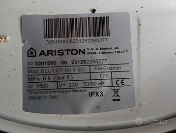 Vendo Scaldabagno elettrico Ariston Blu 1 R V – 80L, praticamente come nuovo e usato pochissimo.