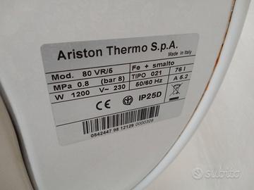 Scaldabagno elettrico Ariston Perla 5 tipo 80 VR/5 Misure: diametro 50 cm. Altezza 60 cm. Euro 60. Smontaggio e ritiro a cura dell' acquirente (no spedizione)