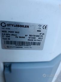 Vendo scaldabagno elettrico ad accumulo marcaStyleboiler, modelloPONY 30/2. L'oggetto è stato utilizzato pochissimo ed è in condizioni estetiche e funzionali eccellenti, come visibile dalle foto. È un modello "Rapido", ideale per piccoli appartamenti, uffici o officine dove serve acqua calda in tempi brevi e con un ingombro ridotto. CARATTERISTICHE TECNICHE: Capacità:30 Litri. Installazione:Sopra lavello (attacchi idraulici verso il basso). Potenza:1200 W (scalda l'acqua molto velocemente). Materiale:Caldaia in acciaio vetroporcellanato ad alta resistenza. Protezione:Anodo di magnesio anticorrosione integrato. Sicurezza:Grado di protezione IP 25. Dimensioni:Compatto e facile da installare. Produzione:Prodotto di alta qualità Made in Italy. STATO DELL'OGGETTO: Usato pochissimo, perfettamente funzionante. Caldaia pulita, nessun segno di calcare eccessivo o ruggine. Pronto per essere montato. CONDIZIONI DI VENDITA: Prezzo:50€ Ritiro/Spedizione:Disponibile per il ritiro a mano in zona Bovolenta (PD) oppure campagna Lupia (VE) spedizione tracciata tramite il servizio del sito.