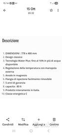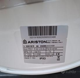 Vendo scaldabagno elettrico, boiler, marca Ariston,capacità di 80 litri con sei mesi di utilizzo, perfettamente funzionante attualmente riposto in magazzino perchè è stato sostituito da una caldaia.