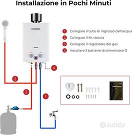 Scaldabagno istantaneo a gas LPG 6 l 12 kW 50 mbar