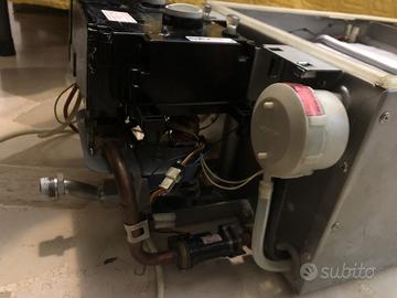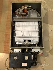 Vendo Scaldabagno istantaneo a gas Junkers modello WT11 con solo difetto di elettronica. La macchina è completa di tutte le parti anche se purtroppo non funziona regolarmente, in quanto si accende solo di rado. Probabilmente è la centralina difettosa. Dopo una perdita, appena sostituito lo scambiatore di calore con uno nuovo, (vedi foto) appena due giorni dopo la riparazione lo scaldabagno ha iniziato a non accendere più il bruciatore. Probabilmente l’acqua che colava prima della riparazione ha danneggiato la scheda elettronica, che in tutta trasparenza funziona solo di rado, sporadicamente. Le spie si accendono ma la macchina la maggior parte delle volte non parte. Risultando tutto il resto funzionante sino al momento della sostituzione della serpentina e per i due giorni successivi, lo propongo tutto assieme come parti di ricambio potenzialmente utili a chi potesse dover riparare lo stesso modello. Lo scambiatore (serpentina) è nuovissimo. Appena montato. Di tipo rivestito anti corrosione. Solo lui vale 220 euro. La ventola come le valvole, il flussometro e tutte le altre parti, sensori ecc andavano perfettamente prima che la scheda smettesse di funzionare. L’idraulico ha detto che secondo lui è la scheda difettosa, il che lascia presumere che sostituendola lo scaldabagno riprenderà a funzionare ma preferisco per prudenza venderlo come pezzi di ricambio. Il prezzo che chiedo serve a coprire in parte i costi della nuova serpentina appena montata, senza considerare l’intervento di sostituzione. Oggetto usato e non funzionante. Formula visto e piaciuto, senza possibilità di garanzia alcuna da parte del venditore. Possibile spedizione oppure ritiro a mano in zona Milano. Per qualunque chiarimento non esitate a contattarmi. Grazie