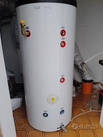 vendo scaldabagno bollitore a pompa di calore da 300 litri Emmeti mod. EE300ES, utilizzabile come puffer/volano termico con sorgente esterna come termocamino, solare termico o pdc tramite gli attacchi dedicati, il compressore installato a bordo è in corto, se lo si fa sostituire da un frigorista si può anche usare da solo senza altre sorgenti esterne, è dotato anche di resistenza elettrica da 1,5kw, smontato perchè ho un impianto fotovoltaico imponente con il quale gestisco un classico scaldabagno economico, sostituiti regolarmente di anodi annualmente, lo vendo a 250 euro, ovviamente date le dimensioni non è prevista la spedizione, contattatemi per ulteriori info