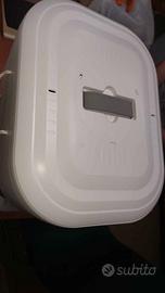 Questo dispositivo è uno scaldasalviette pieghevole, nello specifico il modello ZC-202. Design compatto: Presenta una struttura pieghevole che ne facilita lo stoccaggio quando non è in uso. Materiale: Costruito in silicone, che permette di manipolarlo e piegarlo facilmente. Utilizzo: Progettato per riscaldare asciugamani e accappatoi, offrendo un'esperienza simile a quella di una spa. Comprato pochi mesi fa su Amazon ma effettivamente usato 2 volte. Ritiro a Besozzo VA o spedizione con corriere