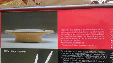 VENDO STUPENDO SCALDAVIVANDE ELETTRICO MARCA : ARDES … MODELLO HELIOS….. CON PIATTO OVALE IN ACCIAIO INOX…. Nuovo Mai Usato, ancora nella Scatola e nei Cellophane Originali. LO SCALDAVIVANDE CONSENTE DI MANTENERE GLI ALIMENTI CALDI PER BEN 2 ORE !!!! E’ SUFFICIENTE METTERLO IN CORRENTE PER POCHI MINUTI . GRAZIE AL CAVO SEPARABILE PIATTOCALDO HELIOS PUO’ ESSERE PORTATO IN TAVOLA CON LA MASSIMA PRATICITA’ . IDEALE PER METTERE IN CALDO PER BEN 2 ORE I PASTI PER I VOSTRI CARI…… MARITI-MOGLI-ANZIANI-DISABILI…..MENTRE NON CI SIETE O PER I PIU’ ESIGENTI CHE VOGLIONO IL PIATTO SEMPRE CALDO ANCHE SE MANGIANO MOLTO LENTAMENTE ED ANNO SEMPRE DA DIRE CHE NON RISCALDATE /SALTATE BEN CALDA LA PASTA-ZUPPA !!! •Larghezza 36 cm Profondità 22 cm Altezza 7,5 cm •Corpo plastico + Piatto ovale (190 x 238 mm) in acciaio INOX •Collegato per pochi minuti alla rete elettrica (per circa 6 minuti), mantiene caldi gli alimenti per ben 2 ore (valore indicativo che varia in funzione della quantità e del tipo di vivande posizionate sul piatto da portata) •Lampada spia rossa: indica che l'apparecchio è collegato alla rete di alimentazione •Lampada spia verde: indica che la fase di accumulo del calore è terminata DAVVERO UN BELL ‘ ARTICOLO UN PREZZO SUPER CONVENIENTE…..VISTO IL NOTEVOLE AUMENTO DEL NUOVO …PER I NOTI PROBLEMI DI MANCANZE MATERIE PRIME E AUMENTI DEI MATERIALI PER LA REALIZZAZIONE. LE CONDIZIONI SONO : VISTO E PIACIUTO !!! NO ASSOLUTAMENTE I SOLITI PERDITEMPO / AFFARISTI E SOPRATTUTTO I SOGNATORI.