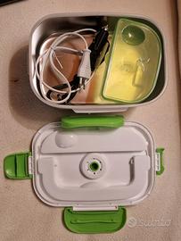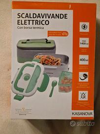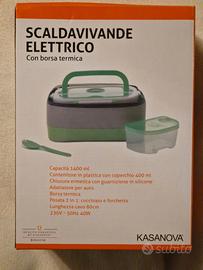Vendo scaldavivande elettrico a marchio Kasanova, ideale per chi pranza fuori casa, in ufficio o in viaggio. Il set è completo di tutti gli accessori originali e della sua scatola. Caratteristiche principali: - Capacità totale: 1400 ml. - Contenitore extra: Include un contenitore in plastica con coperchio da 400 ml per separare le pietanze. - Chiusura ermetica: Guarnizione in silicone per evitare la fuoriuscita di liquidi. - Accessori inclusi: Posata 2-in-1 (cucchiaio e forchetta), cavo di alimentazione (80cm) e adattatore per auto. - Borsa termica: Inclusa nella confezione per mantenere la temperatura e facilitare il trasporto. - Potenza: 40W. Stato del prodotto: L'articolo è intonso, mai utilizzato per scaldare vivande. Sono presenti il manuale di istruzioni e l'imballaggio originale. Regalo ricevuto ma non gradito per mancate condizioni di utilizzo.