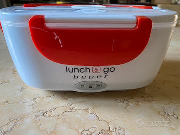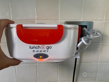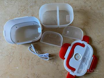 scaldavivande elettrico portatile, due contenitori removibili, piastra riscaldante in acciaio, posate di plastica in dotazione.collre bianco e rosso, potenza 40W marca beeper