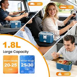 Scaldavivande Elettrico Portatile 100W 1.8L Lunch Box Termico 3 in 1(12V/24V/240V) per Auto Camion e Ufficio, Porta Pranzo Riscaldabile in Acciaio Inox con Borsa Forchetta e Cucchiaio RISCALDAMENTO UNIFORME E SENZA ATTESE: Dimentica microonde e pasti freddi. Grazie alla potenza da 100W, questo scaldavivande elettrico riscalda il cibo in modo uniforme, mantenendo sapore e consistenza per un pranzo sempre piacevole DESIGN FUNZIONALE E SPAZIOSO: Con capacità da 1,8L, offre spazio sufficiente per un pasto completo. Il design compatto lo rende facile da trasportare, mentre gli accessori inclusi ti permettono di mangiare comodamente ovunque UTILIZZO OVUNQUE, MASSIMA PRATICITÀ: Compatibile con prese 12V, 24V e 240V, è perfetto sia in auto o camion durante i viaggi, sia in ufficio o a casa. Una soluzione pratica per chi lavora fuori e vuole mangiare caldo senza complicazioni MATERIALI SICURI PER USO ALIMENTARE: Il contenitore interno è realizzato in acciaio inox per uso alimentare, resistente agli odori e facile da mantenere pulito. Ideale per conservare i tuoi pasti in modo igienico ogni giorno PULIZIA SEMPLICE E VELOCE: Il contenitore estraibile facilita il lavaggio dopo ogni utilizzo. Basta rimuoverlo e pulirlo rapidamente per avere sempre il tuo lunch box pronto all’uso