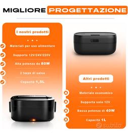 80W Riscaldamento Rapido: 1,5L scalda vivande portatile elettrico presenta elemento viene utilizzato riscaldamento termostatico PTC, 80W di alta potenza. Sufficiente collegarlo 20-30 minuti prima potrete gustare pasto mangiare casalingo caldo e salutare cibi.