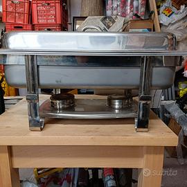 Scaldavivande Chafing Dish Dedra Karel GN 1/1(53x32,5) h.mm65. Realizzato in acciaio inox, con due fornelletti, Dimensioni(61x36x30cm).disponibili ricariche gel.